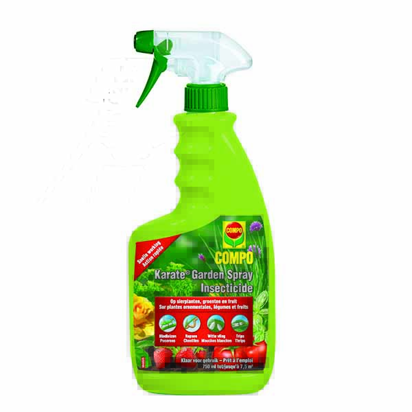 De gebruiksklare COMPO Karate Garden met brede werking is ideaal voor de bestrijding van verschillende soorten zuigende en bijtende insecten. De specifieke formulering zorgt voor een snelle opname door de plant, waardoor het product regenvast is na 2 uur. Bovendien heeft het product een werking gedurende twee weken. Voor groenten en fruit is de wachttijd voor de oogst heel kort.