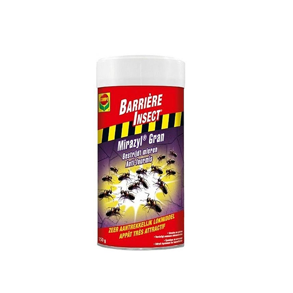 COMPO Mirazyl Gran is een middel voor de bestrijding van mieren en mierennesten. Het product is oplosbaar in water of kan gestrooid worden. Het product bevat een stofvrij lokmiddel in de vorm van fijn suikergranulaat. Dankzij de sterke aantrekkingskracht van het product worden mieren door een eenmalige toepassing bestreden.
