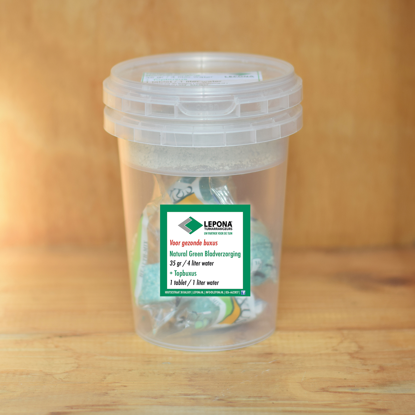 Inhoud: bakje met Natural Green en Topbuxus tabletten.