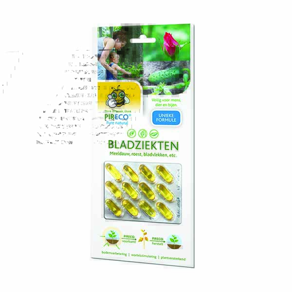 Pireco Bladziekten bestaat uit een samenstelling van specifiek werkende (niet toxische) kruidenextracten die planten weerbaar maken bij bladschimmels en bladvlekken. Zoals o.a. valse– en echte Meeldauw, Roest, Bladvlekkenziekte, Blackspot. Maar ook gras-bladschimmels.
